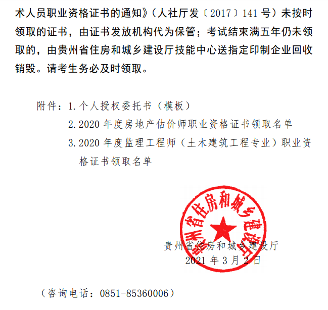 貴州2020年度監(jiān)理工程師土建職業(yè)資格證書領(lǐng)取通知