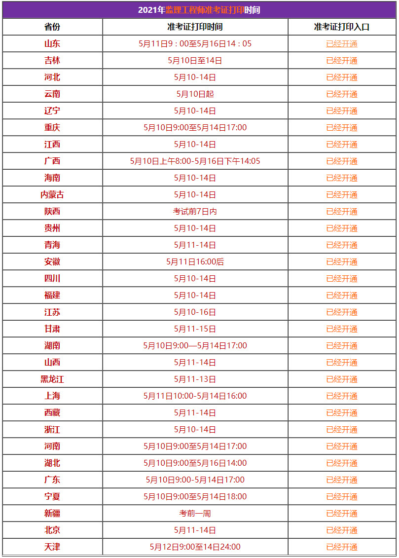 監(jiān)理工程師準(zhǔn)考證什么時(shí)候打???