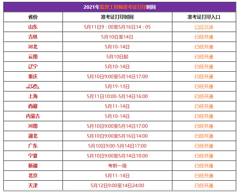 監(jiān)理工程師準考證打印時間:5月10-14日