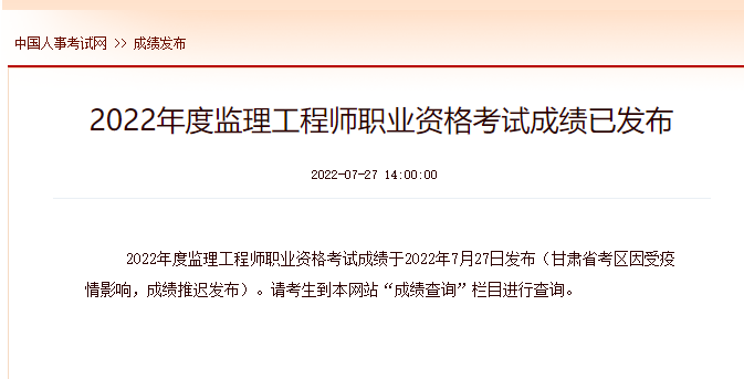 2022年監(jiān)理工程師成績查詢?nèi)肟谝呀?jīng)開通