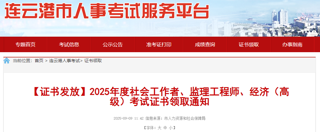 2025年度社會工作者、監(jiān)理工程師、經(jīng)濟(jì)(高級)考試證書領(lǐng)取通知