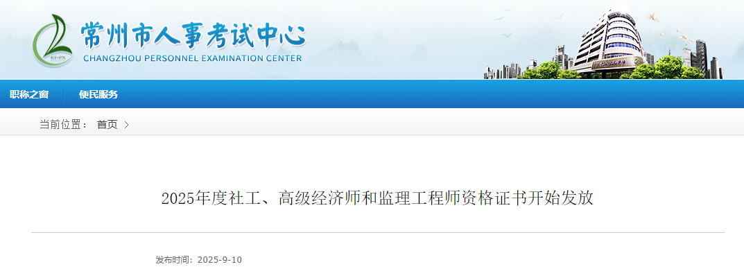 江蘇省常州市2025年監(jiān)理工程師資格證書發(fā)放通知