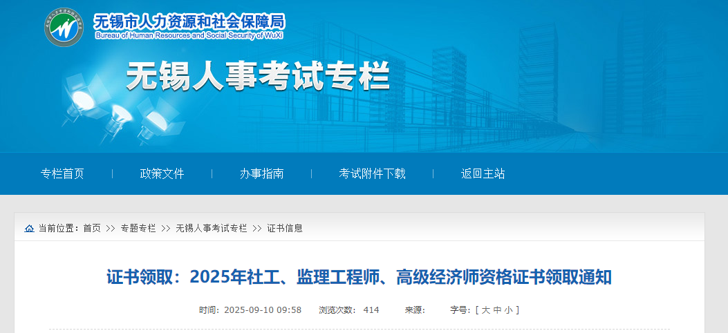 江蘇無錫考點(diǎn)2025年監(jiān)理工程師合格證書領(lǐng)取通知