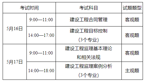 注:《建設(shè)工程合同管理》和《建設(shè)工程監(jiān)理基本理論和相關(guān)法規(guī)》為基礎(chǔ)科目;《建設(shè)工程目標(biāo)控制》和《建設(shè)工程監(jiān)理案例分析》為專業(yè)科目。專業(yè)類別分為土木建筑工程、交通運(yùn)輸工程、水利工程,報(bào)考人員可根據(jù)實(shí)際工作需要選報(bào)其一。