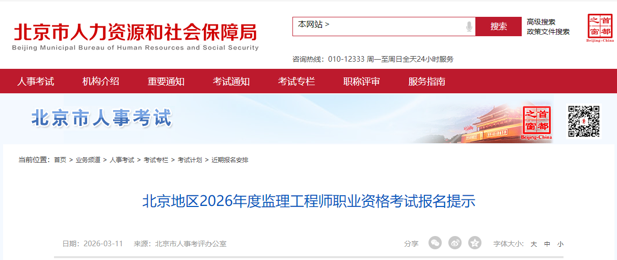 北京地區(qū)2026年度監(jiān)理工程師職業(yè)資格考試報(bào)名提示