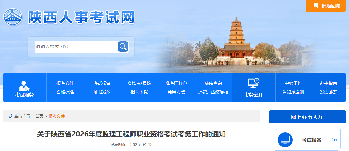 陜西省2026年度監(jiān)理工程師職業(yè)資格考試考務(wù)工作的通知