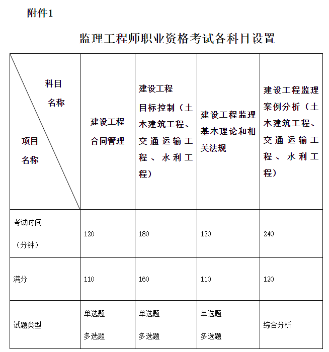 1.監(jiān)理工程師職業(yè)資格考試各科目設置