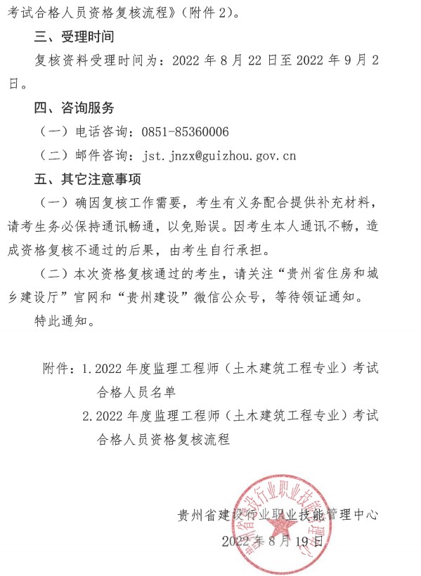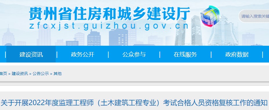 貴州關(guān)于開(kāi)展2022年度監(jiān)理工程師考試合格人員資格復(fù)核工作的通知