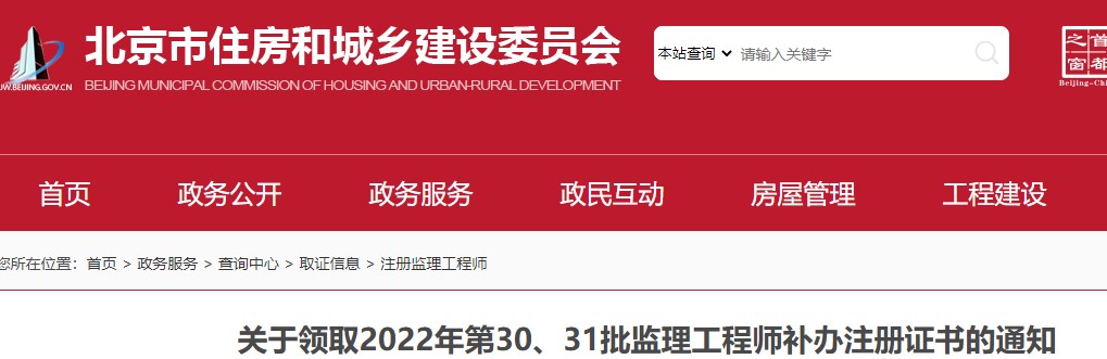 北京市?關(guān)于領(lǐng)取2022年第30、31批監(jiān)理工程師補(bǔ)辦注冊(cè)證書的通知