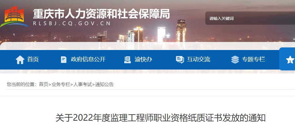 重慶市?關于2022年度監(jiān)理工程師職業(yè)資格紙質(zhì)證書發(fā)放的通知