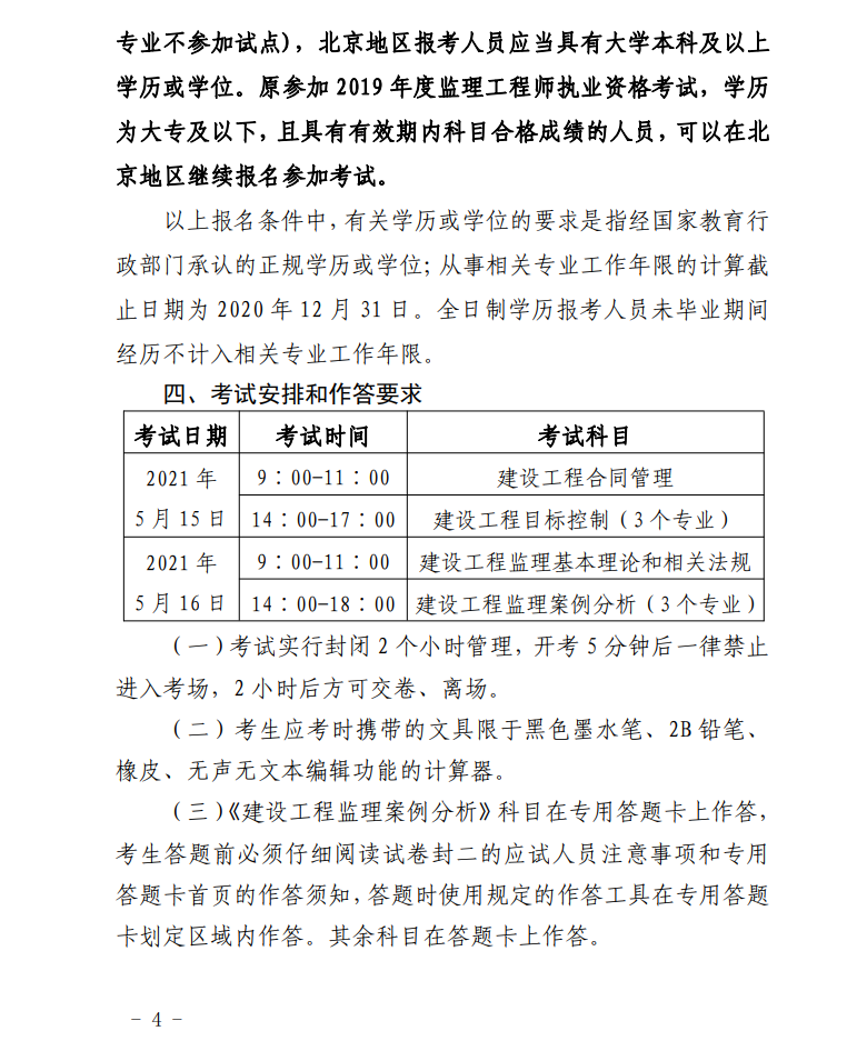 關(guān)于做好北京地區(qū)2021年度監(jiān)理工程師職業(yè)資格考試工作的通知