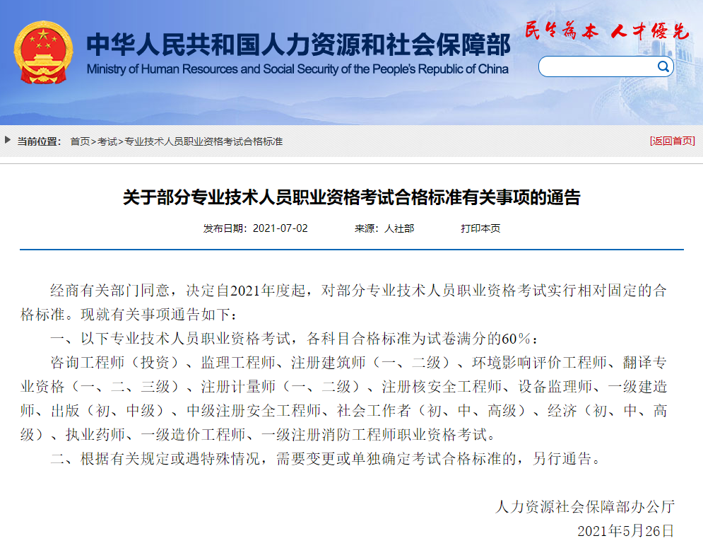 經(jīng)商有關(guān)部門同意,決定自2021年度起,對(duì)部分專業(yè)技術(shù)人員職業(yè)資格考試實(shí)行相對(duì)固定的合格標(biāo)準(zhǔn)。現(xiàn)就有關(guān)事項(xiàng)通告如下: