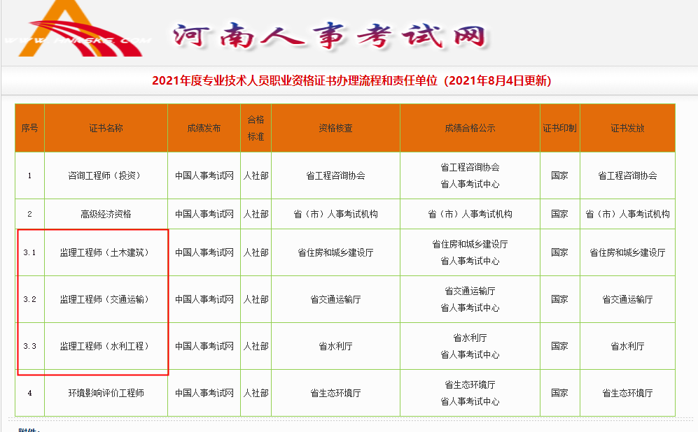 河南省2021年度監(jiān)理工程師職業(yè)資格證書辦理流程和責任單位