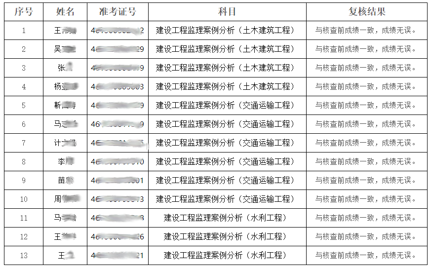 根據(jù)有關(guān)規(guī)定,陜西省人事考試中心依程序受理我省2021年度監(jiān)理工程師執(zhí)業(yè)資格考試主觀題成績復(fù)核申請。經(jīng)人社部人事考試中心等核查,現(xiàn)將復(fù)核情況公告如下: