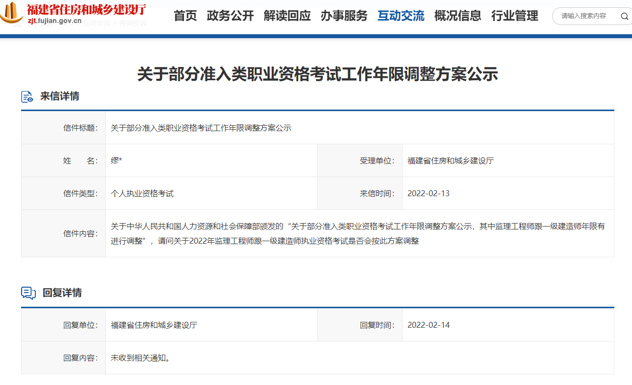 福建關(guān)于2022年監(jiān)理工程師執(zhí)業(yè)資格考試工作年限是否會按照方案調(diào)整