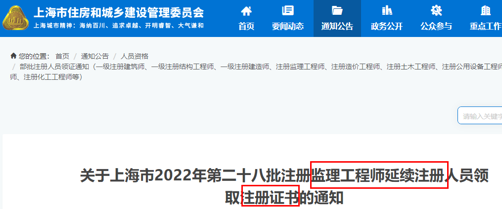 上海2022年第二十八批注冊(cè)監(jiān)理工程師延續(xù)注冊(cè)人員領(lǐng)取注冊(cè)證書(shū)的通知
