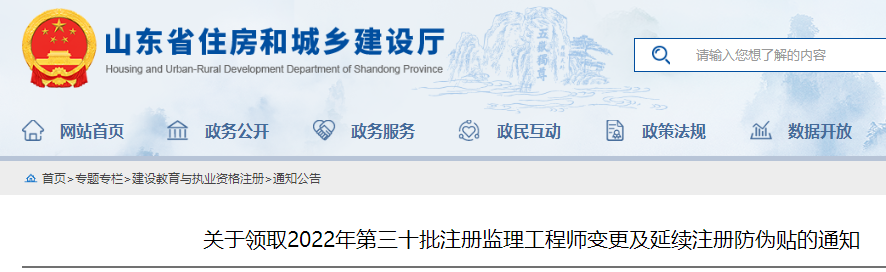 山東領(lǐng)取2022年第三十批注冊(cè)監(jiān)理工程師變更及延續(xù)注冊(cè)防偽貼的通知