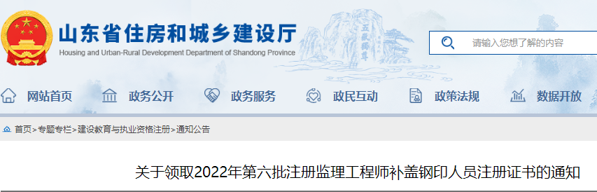 山東領(lǐng)取2022年第六批注冊監(jiān)理工程師補(bǔ)蓋鋼印人員注冊證書的通知