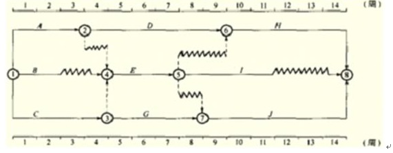 14、某工程雙代號時標網(wǎng)絡計劃如下圖所示: