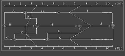 某工程雙代號時標(biāo)網(wǎng)絡(luò)計劃執(zhí)行到第3周末和第7周末時,檢查其實際進(jìn)度如下圖前鋒線所示,檢查結(jié)果表明( )。(2007、2006、2005、2004年)