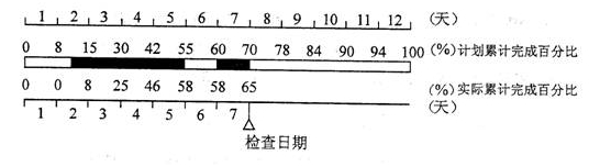 某混凝土工程按計(jì)劃12天完成,下圖中標(biāo)出了截止第7天末的實(shí)際施工時(shí)間,下列表述正確的是( )。