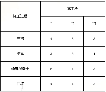 某基礎(chǔ)工程包括開挖、支摸、澆筑混凝土及回填四個(gè)施工過程,分3個(gè)施工段組織流水施工,流水節(jié)拍見下表,則該基礎(chǔ)工程的流水施工工期為( )天。