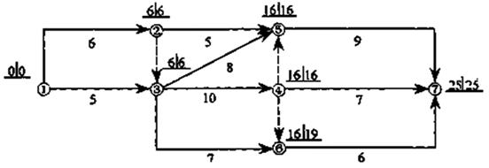 B.工作2~5的總時(shí)差與自由時(shí)差相等