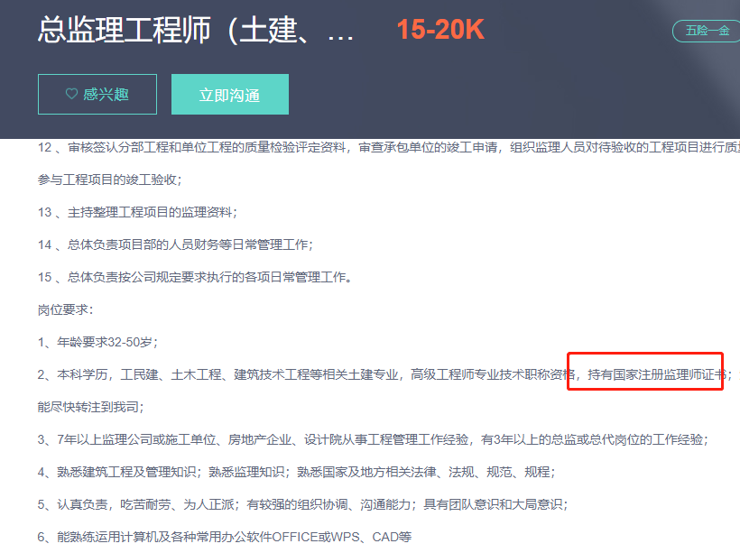 這是小編在某招聘軟件上截取的招聘要求及薪資,可以看出持有監(jiān)理工程師證書的總監(jiān),薪資并不是很低,付出一定會有所收獲,所以大家一定不要被外面的言語所困,符合監(jiān)理工程師報名條件,能報考監(jiān)理工程師考試的一定要報名,不給自己一次機(jī)會,永遠(yuǎn)都不知道自己可以達(dá)到什么樣的高度,不固步自封,該學(xué)習(xí)學(xué)習(xí),該努力努力,甭管大家怎么說,同樣的機(jī)會放在面前,相信考下證書的你一定會比沒考下的人機(jī)會更多~