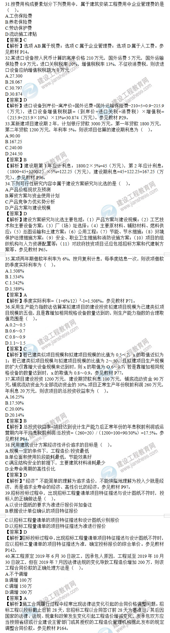 2021年監(jiān)理工程師土建控制試題及答案31-40題,建設工程教育網(wǎng)考后將會根據(jù)學員反饋進行匯總,考試過后,廣大考生最關心的問題莫過于2021年監(jiān)理工程師土建控制試題及答案31-40題了,網(wǎng)校會及時匯總2021年監(jiān)理工程師土建控制試題及答案分享給大家,并且做出答案解析,希望能為廣大監(jiān)理考生朋友帶來幫助。