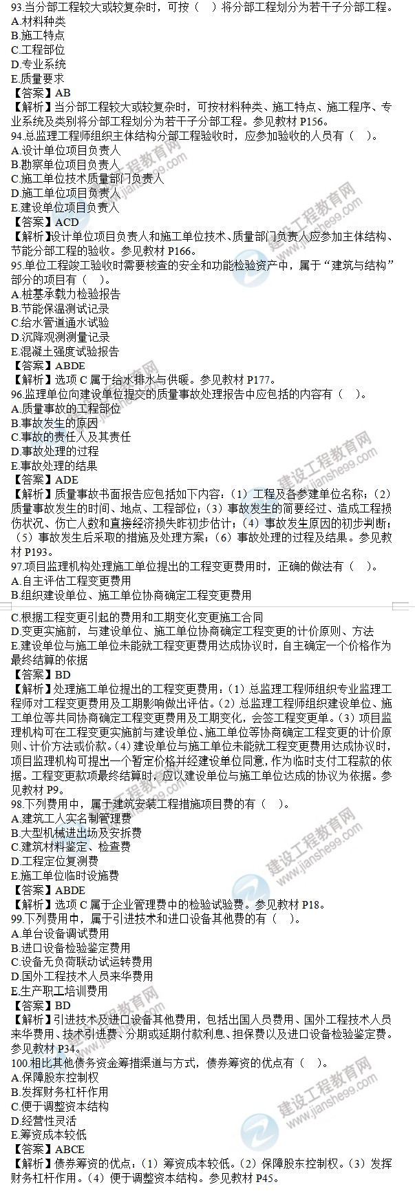 2021年監(jiān)理工程師土建控制試題及答案91-100題,建設(shè)工程教育網(wǎng)考后將會根據(jù)學(xué)員反饋進(jìn)行匯總,考試過后,廣大考生最關(guān)心的問題莫過于2021年監(jiān)理工程師土建控制試題及答案91-100題了,網(wǎng)校會及時匯總2021年監(jiān)理工程師土建控制試題及答案分享給大家,并且做出答案解析,希望能為廣大監(jiān)理考生朋友帶來幫助。