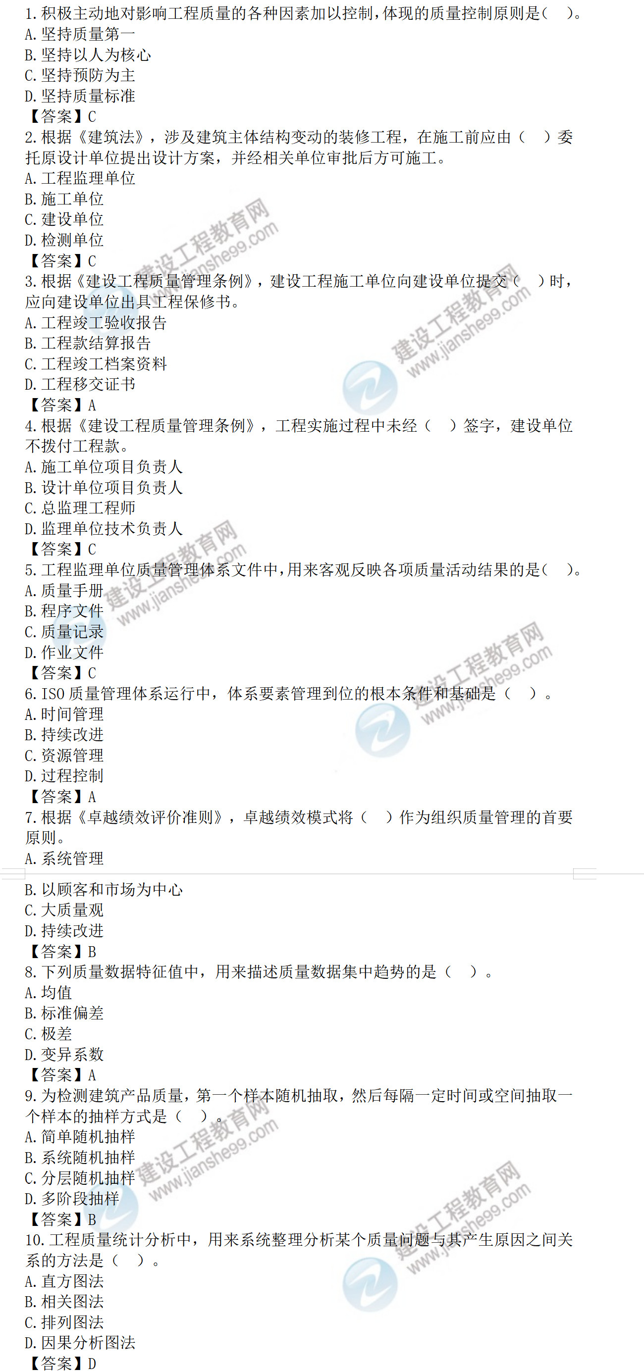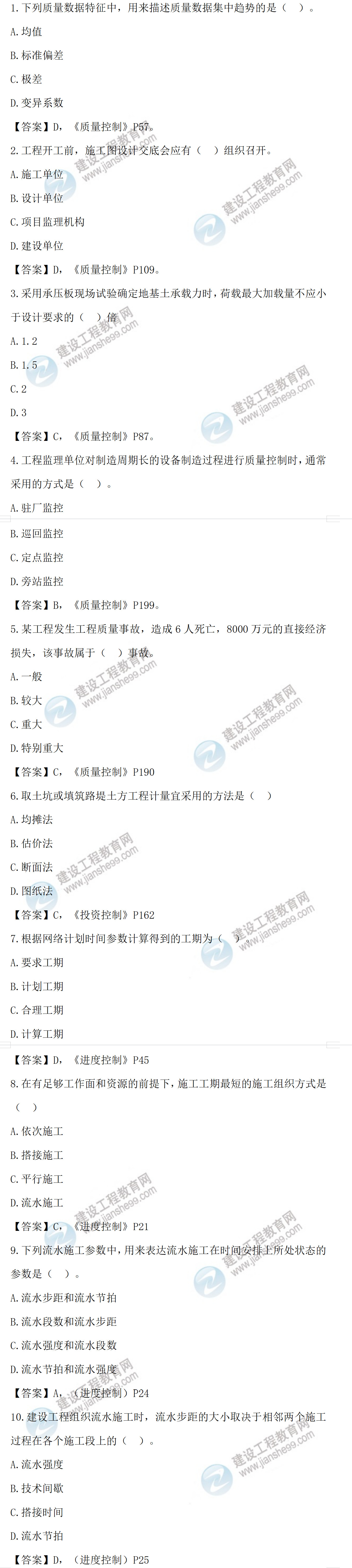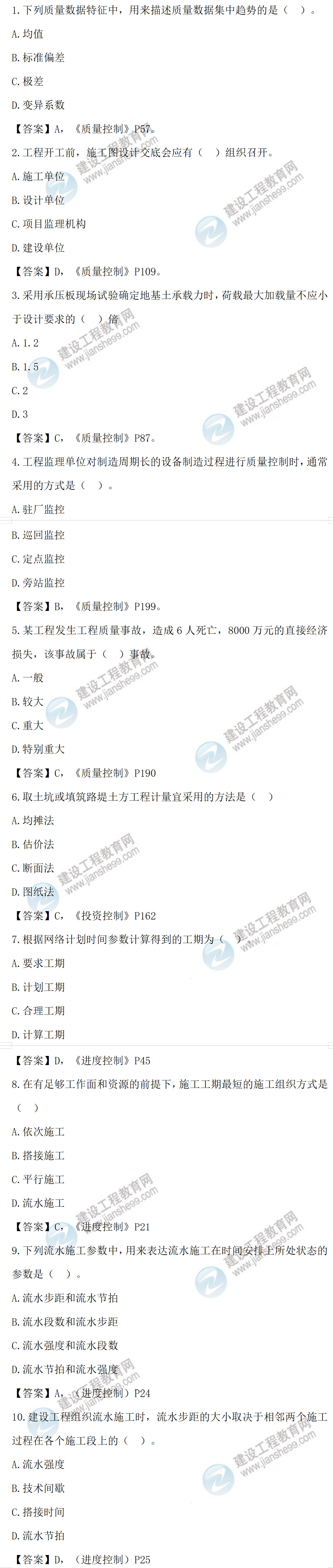 2022年監(jiān)理工程師目標控制土建考試答案1-10題(補考)