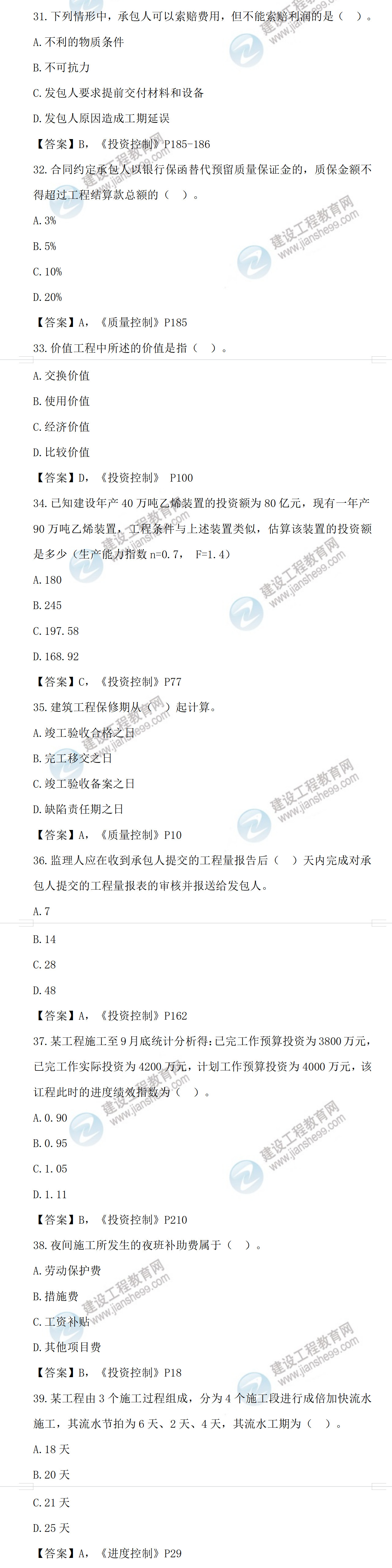 2022年監(jiān)理工程師目標控制土建考試答案31-40題(補考)