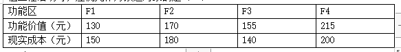 63.某分項(xiàng)工程具有四項(xiàng)功能,各功能區(qū)功能價(jià)值和現(xiàn)實(shí)成本如下表。對(duì)該分項(xiàng)工程開展價(jià)值工程活動(dòng)時(shí),應(yīng)優(yōu)先作為改進(jìn)對(duì)象的是( )。
