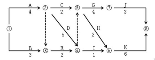 某工程雙代號(hào)網(wǎng)絡(luò)計(jì)劃如下圖所示,其中工作G的最早開(kāi)始時(shí)間為( )。