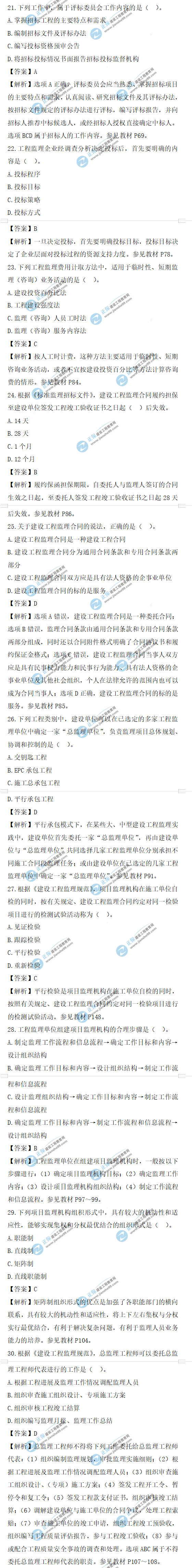 2021年監(jiān)理工程師理論和法規(guī)試題及答案21-30題