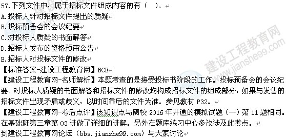 同時,為方便廣大考生學習交流,我們也在論壇發(fā)布了最新的試題相關信息,歡迎大家登錄論壇溝通交流,點擊進入2016年監(jiān)理工程師考試交流專區(qū),建設工程教育網(wǎng)預祝各位學員朋友們金榜題名,夢想成真!