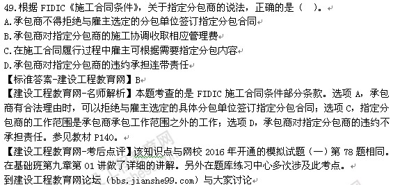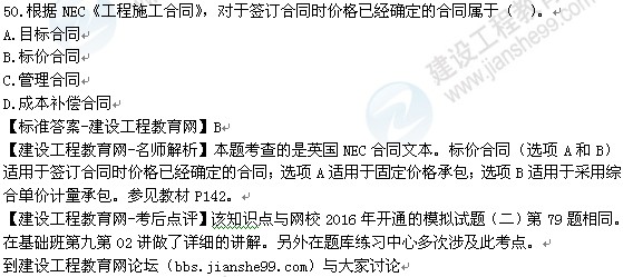 2016年監(jiān)理工程師《建設工程合同管理》答案及解析由老師整理而成,部分網(wǎng)站未經(jīng)許可擅自轉(zhuǎn)載、抄襲,造成內(nèi)容有所缺失或錯誤,請大家以建設工程教育網(wǎng)發(fā)布為準!