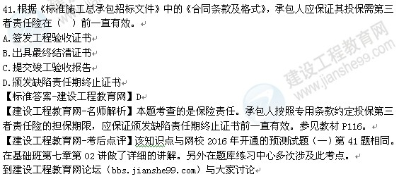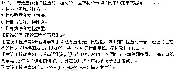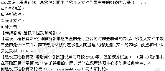同時,為方便廣大考生學習交流,我們也在論壇發(fā)布了最新的試題相關(guān)信息,歡迎大家登錄論壇溝通交流,點擊進入2016年監(jiān)理工程師考試交流專區(qū),建設工程教育網(wǎng)預祝各位學員朋友們金榜題名,夢想成真!