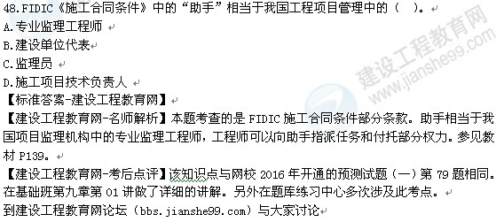 2016年監(jiān)理工程師《建設工程合同管理》答案及解析由老師整理而成,部分網(wǎng)站未經(jīng)許可擅自轉(zhuǎn)載、抄襲,造成內(nèi)容有所缺失或錯誤,請大家以建設工程教育網(wǎng)發(fā)布為準!