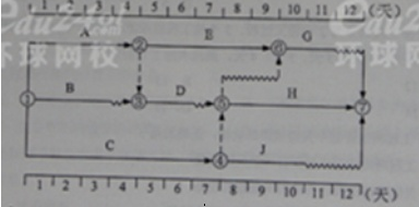 【建設(shè)工程教育網(wǎng)老師權(quán)威解析】:安排B工作第2天進場開始施工,施工順序按照B→D→J→G,施工機械在現(xiàn)場閑置只有D工作與J工作之間的1天.