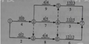 【建設(shè)工程教育網(wǎng)老師權(quán)威解析】:工作1→3的自由時差為2;工作2→4的自由時差為0;工作4→7為非關(guān)鍵工作.