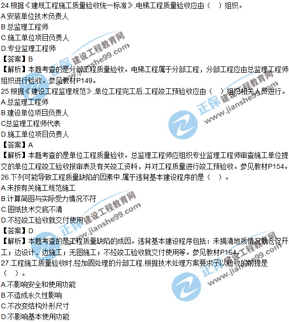 2018年監(jiān)理工程師考試于5月19日、20日舉行,考試過后,廣大考生最關(guān)心的問題莫過于“2018年監(jiān)理工程師《建設工程質(zhì)量、投資、進度控制》試題及答案”了,建設工程教育網(wǎng)將會根據(jù)學員反饋,及時匯總2018監(jiān)理試題相關(guān)信息分享給大家,并且會及時做出答案解析,希望能為廣大監(jiān)理考生朋友帶來幫助。