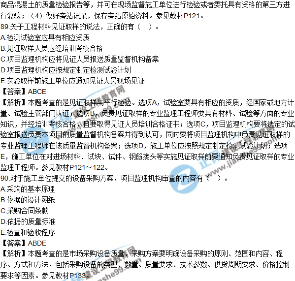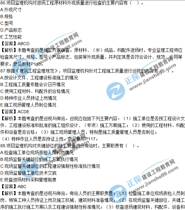 2018年監(jiān)理《建設(shè)工程質(zhì)量、投資、進(jìn)度控制》試題及答案多選(81-90)