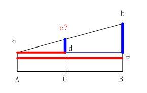 其中A.B.C.a(chǎn)、b是已知的數(shù)據(jù),要求的為c.根據(jù)此題的形式,來利用相似三角形對應(yīng)邊成比例來計算。