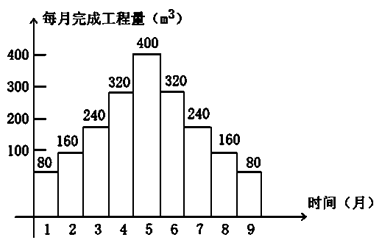 | 每月完成量(m3) | 80 | 160 | 240 | 320 | 400 | 320 | 240 | 160 | 80 |