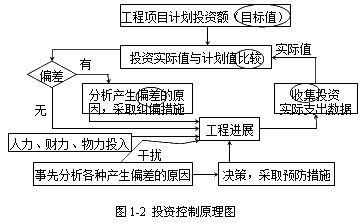 ◆主要環(huán)節(jié):確定投資目標(biāo);實(shí)際值與計(jì)劃值的比較;發(fā)現(xiàn)并糾正偏差等。具體如圖1-2所示。