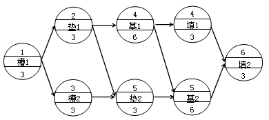 雙代號(hào)網(wǎng)絡(luò)圖(箭線式網(wǎng)絡(luò)圖)——以箭線及其兩端節(jié)點(diǎn)的編號(hào)表示工作;同時(shí),節(jié)點(diǎn)表示工作的開(kāi)始或結(jié)束以及工作之間的連接狀態(tài)。