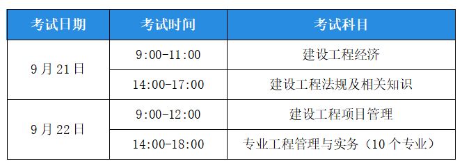 2019年一級(jí)建造師考試時(shí)間為9月21日至9月22日,具體安排如下: