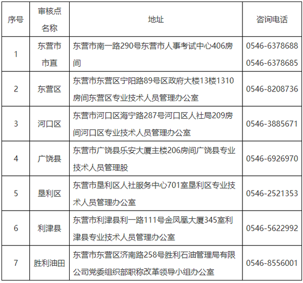 各報(bào)名點(diǎn)審核地址及咨詢電話見下表: