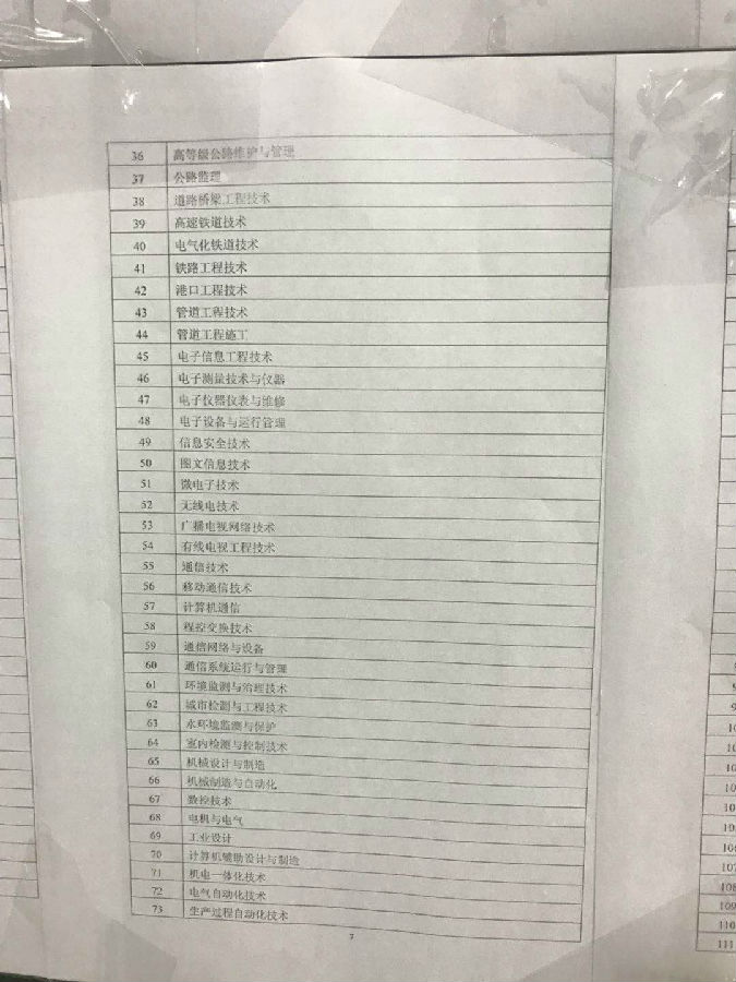 注:本表按教育部現行《普通高等學校高職高專教育指導性專業(yè)目錄(2005年版)》編制。共涉及“土建施工類、工程管理類、建筑設計類、城鎮(zhèn)規(guī)劃與管理類、建筑設備類、市政工程類、房地產類、水利工程與管理類、機械設計制造類、自動化類、電子信息類、通訊類、環(huán)保類、機電設備類、公路運輸類、鐵路運輸類、港口運輸類、管道運輸類、林業(yè)技術類、城市軌道運輸類、水上運輸類、民用運輸類、資源勘查類、水利水電設備類、地質工程與技術類、礦冶工程類、礦物加工類、測繪類、材料類、能源類、電力技術、計算機類、安全類、廣播影視類”等34類133個專業(yè),其中本專業(yè)76個,相近專業(yè)57個。